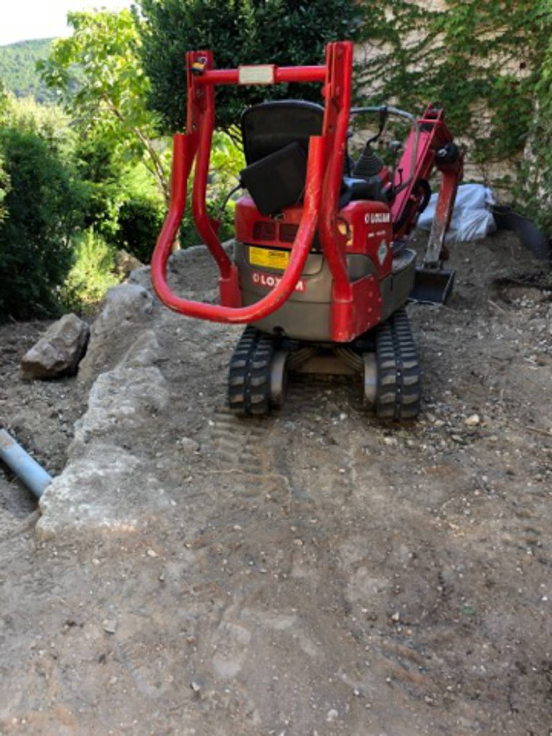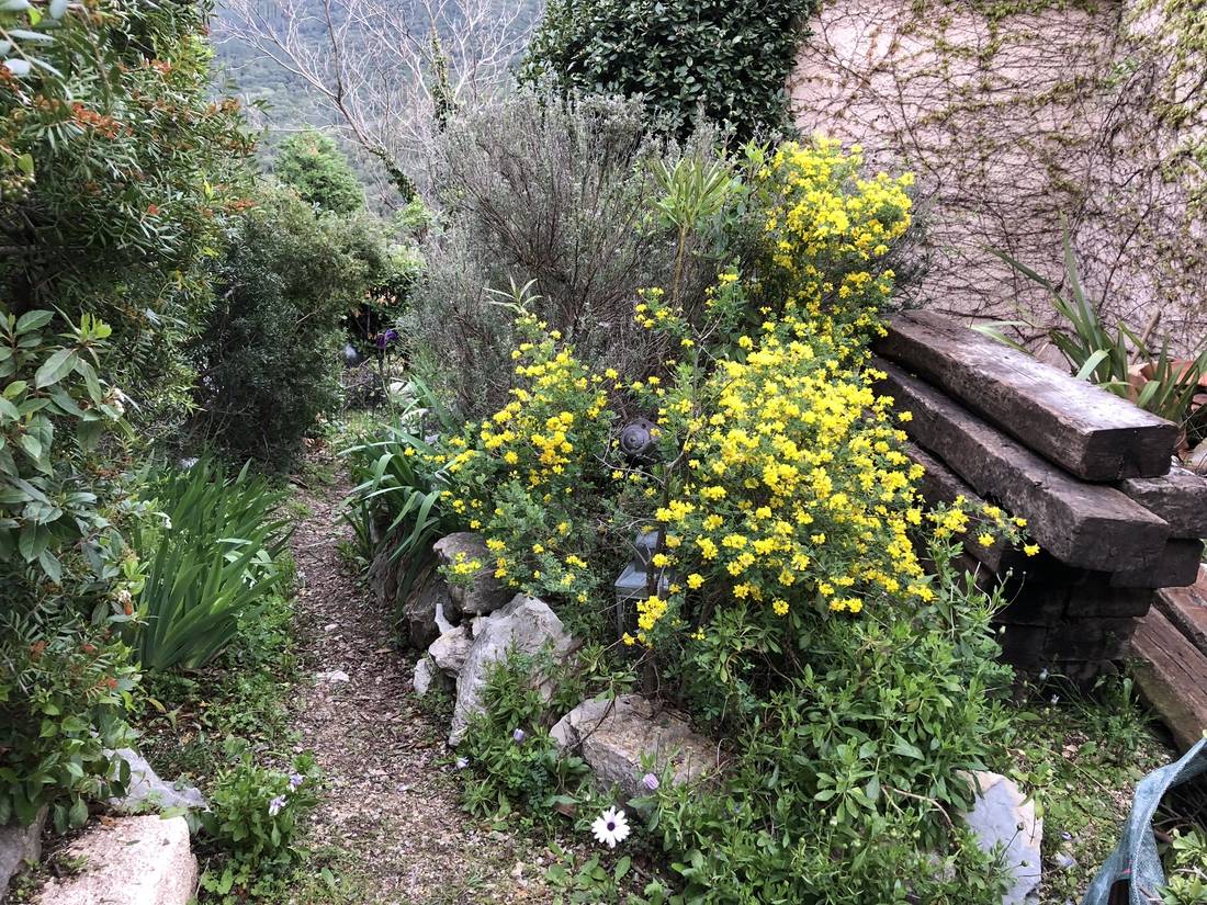 L'objectif de cet aménagement de jardin a pour but de gagner en superficie en enlevant les lauriers morts de la haie, en les dessouchant, en faisant une sélection des végétaux en repoussant les restanques pour créer un chemin plus large et en posant des marches à base de poutre de chemin de fer.