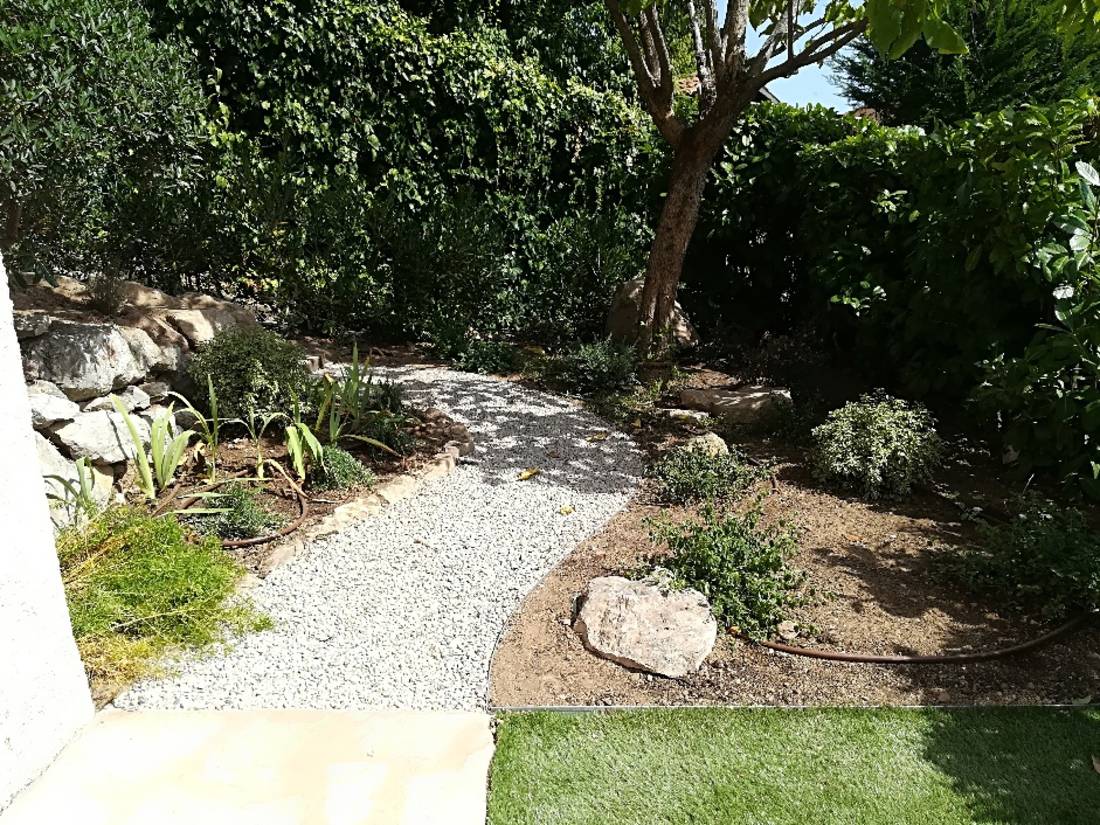 Bocca Jardins a aménagé un jardin dans les hauteurs de St Jean de Cannes dans le Var pour des particuliers pour leur maison individuelle.