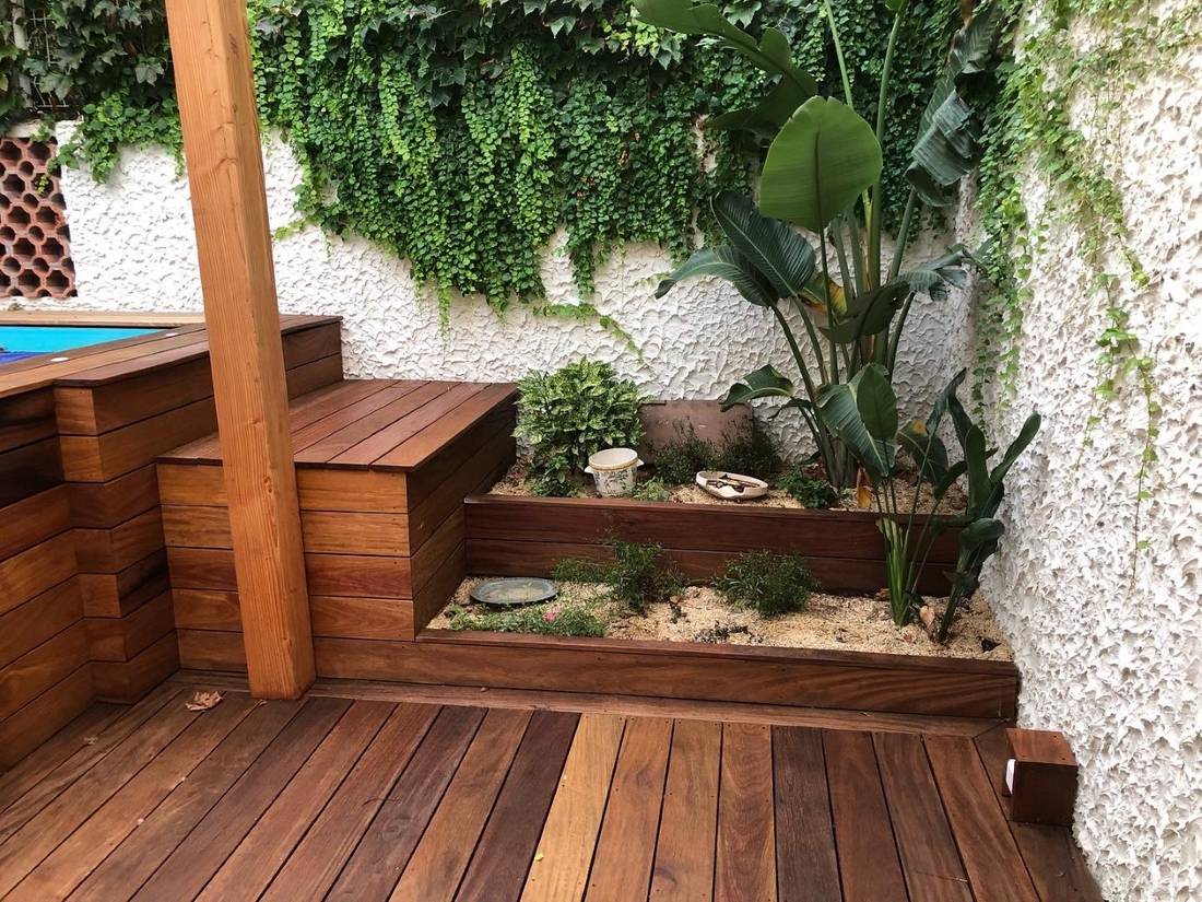 La terrasse en lames de cumaru sera traitée pour garder sa couleur initiale de brun foncé et sera traitée une fois par an pour préserver la couleur et la durabilité de la terrasse.