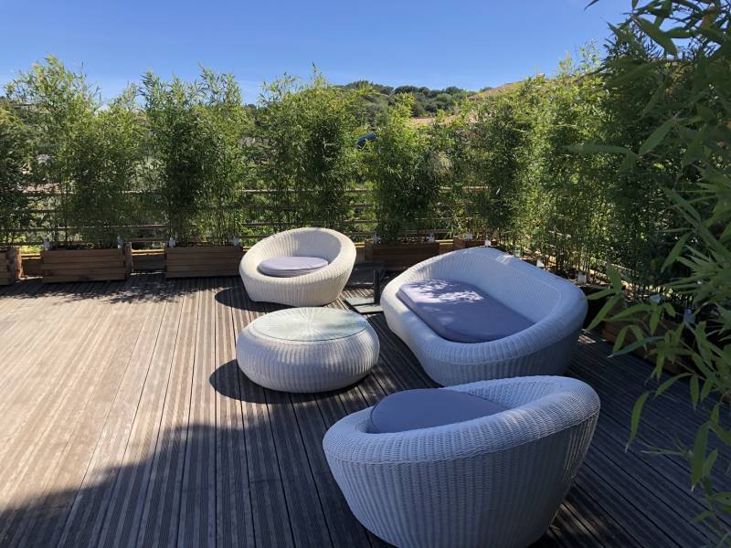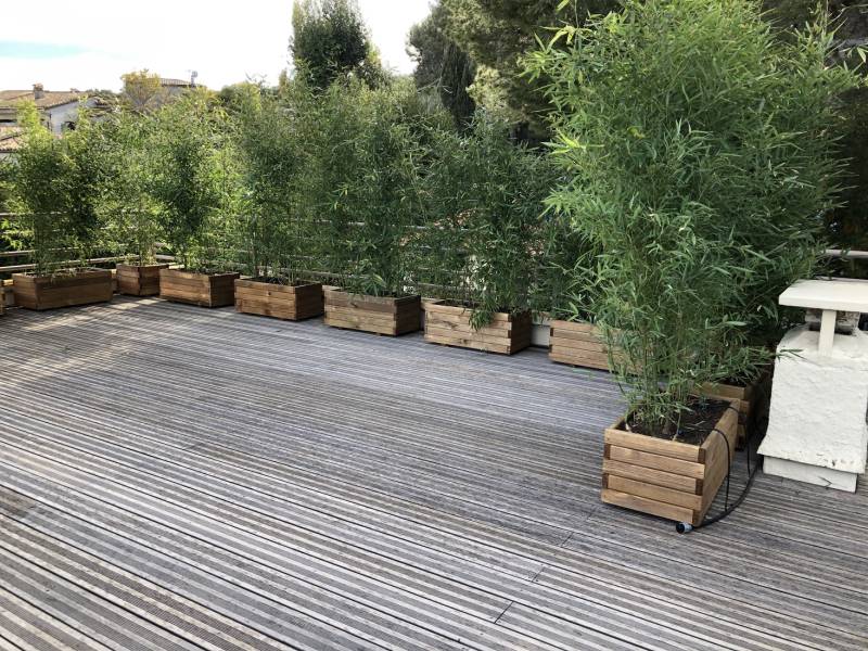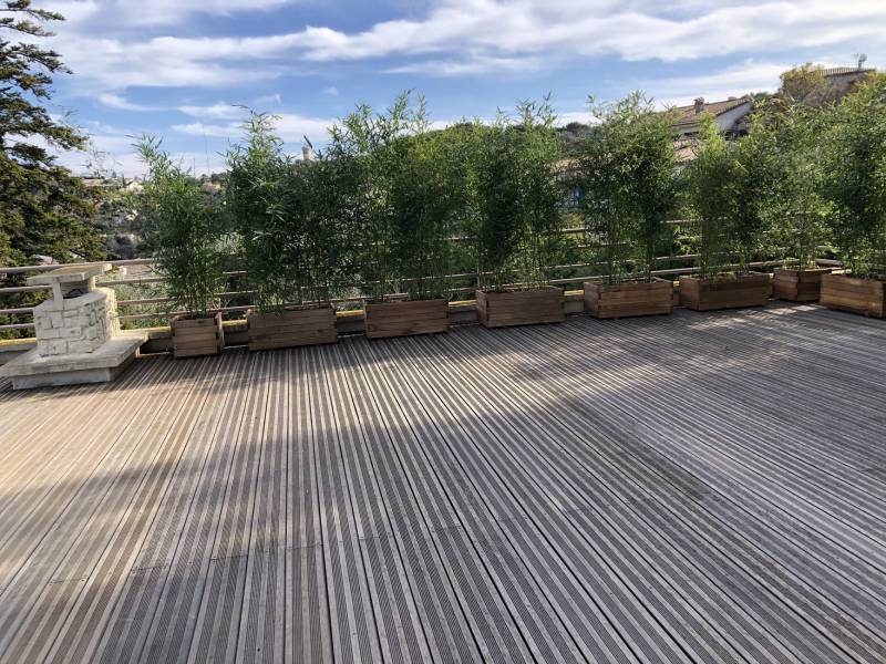 L’utilisation et l’aménagement d’un toit terrasse privé est souvent un défi lorsque l'on doit composer avec des regards indiscrets de voisins ou de passants tout en gardant une vue sur les montagnes, la mer ou tout autre paysage que nous offre notre environnement. Pour remédier à cette situation, l'installation de jardinières et la plantation de bambous et de photinia peuvent être des solutions efficaces.
