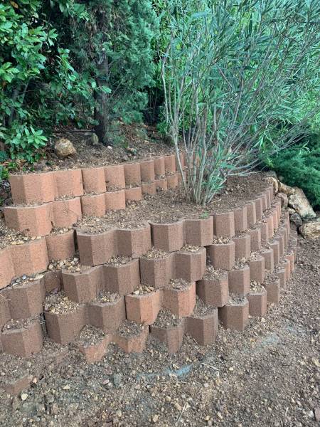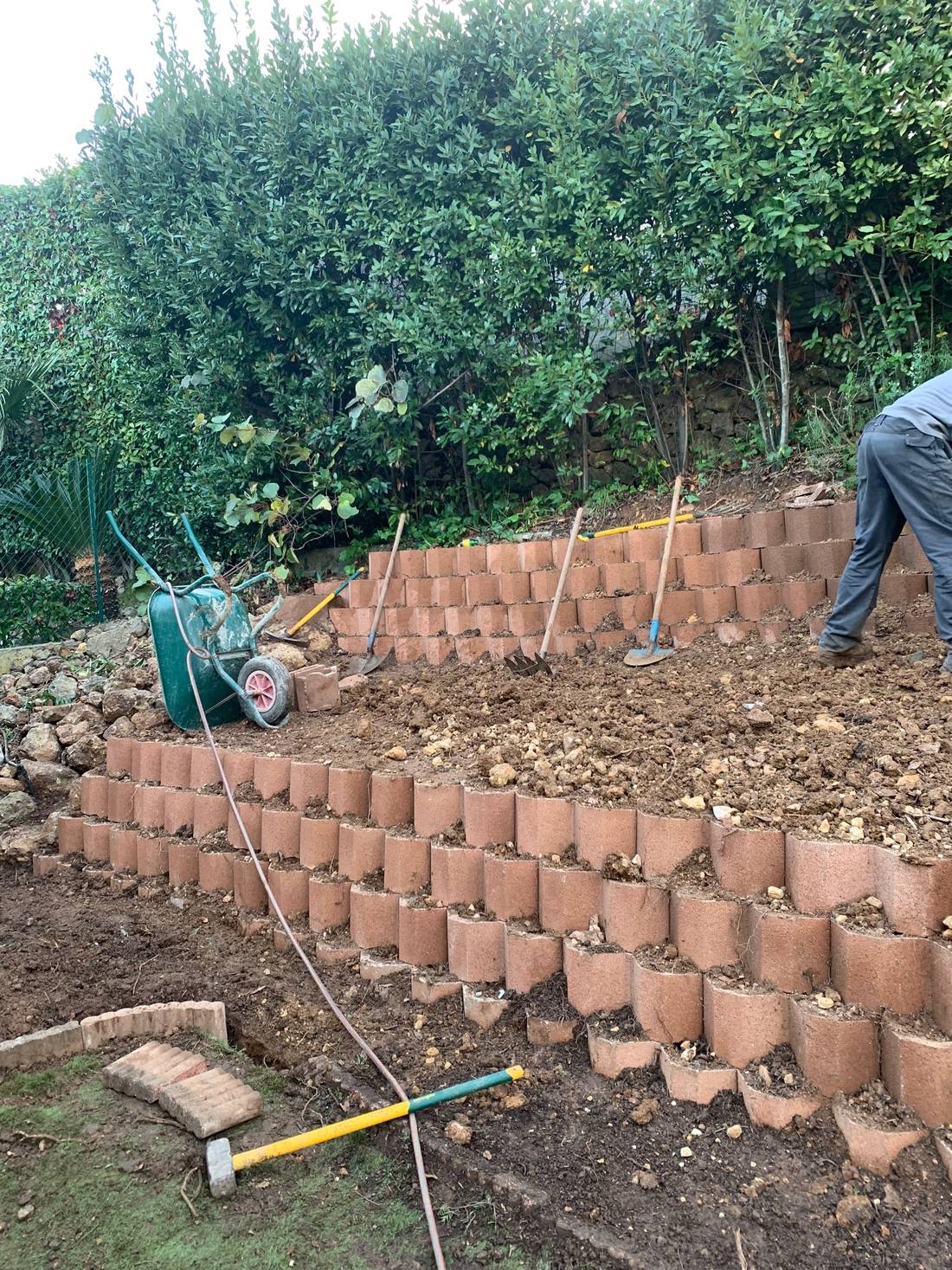 Bocca Jardins, jardinier paysagiste, propose à la demande d'un client, sur les hauteurs de Vallauris, pour la consolidation de son mur en pierre naturel de remplacer celui-ci par des bétoflors.