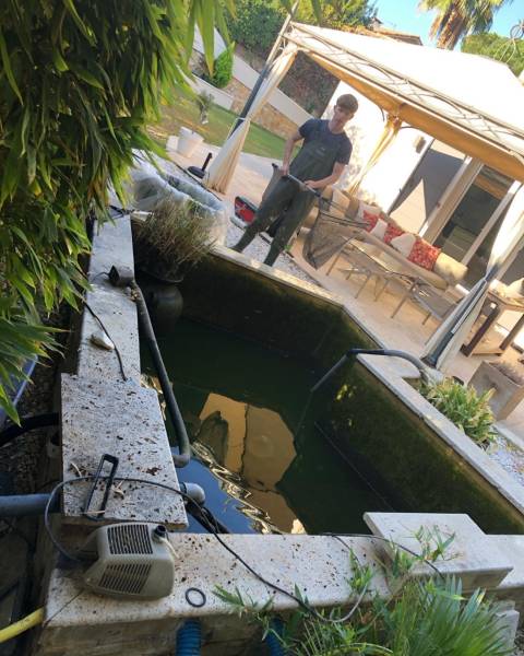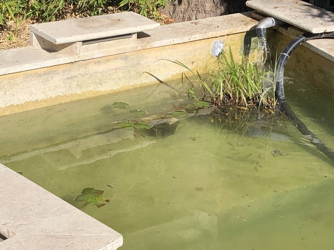 La pompe du bassin ne fonctionnant plus, Bocca Jardins a remplacé celle-ci en vérifiant lors de sa remise en route de son bon fonctionnement et à vérifier la pompe de la lame d'eau, l'état des mousses du filtre et des lampes UV.