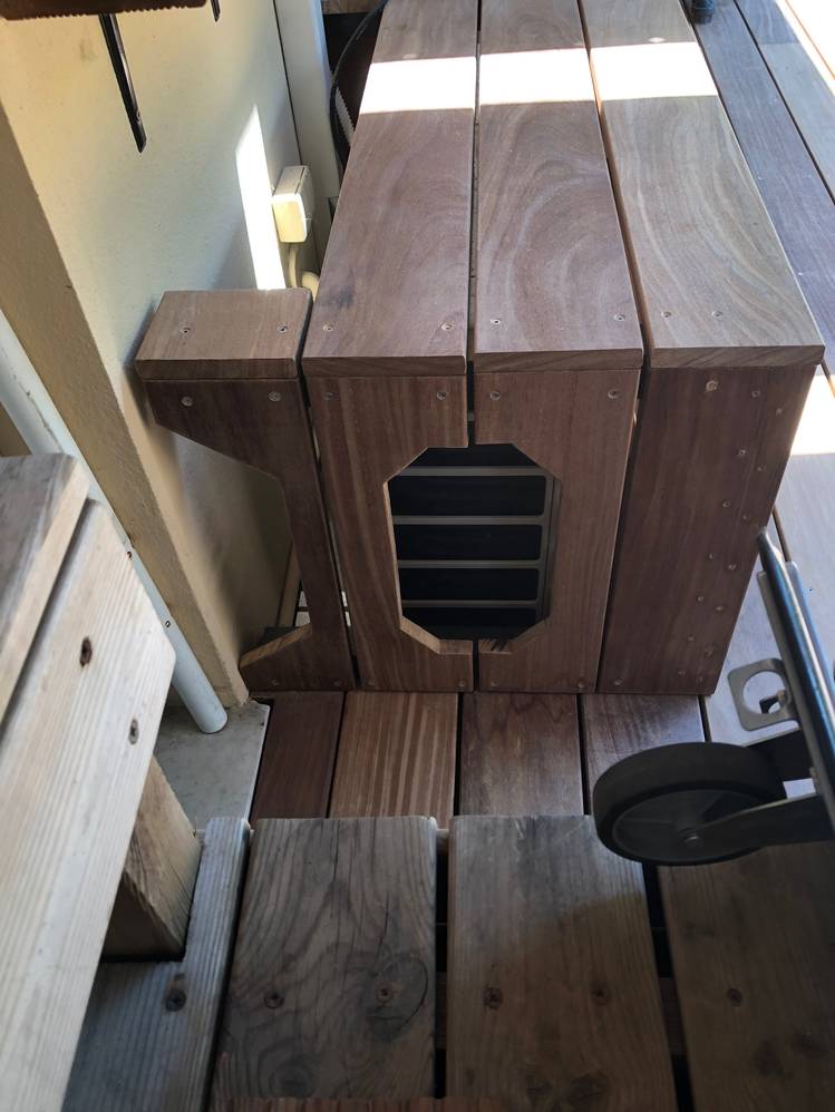 Dans la suite de la réalisation, la cliente nous a demandée de réaliser des caches climatiseurs avec le même bois pour les faire disparaitre du regard. Une harmonie complète dans ce rez-de-jardin.